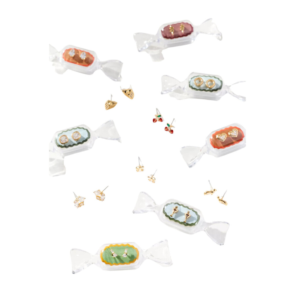 The cutest Antho earrings in a little glass ornament box.